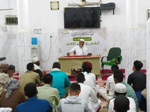 وفي عصر الجمعة قدّم الشيخ علي باحمادي لقاءً تثقيفيًا خاصًا بطلبة العلم ومعلمي الحلقات بعنوان “الهزيمة النفسية”، تناول فيه أسباب الإحباط النفسي وطرق تعزيز الثقة والفاعلية، وسط تفاعل كبير من الحاضرين.